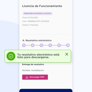 Resolutivos, licencias y comprobantes en un solo lugar seguro, disponibles 24/7, sin papeles.