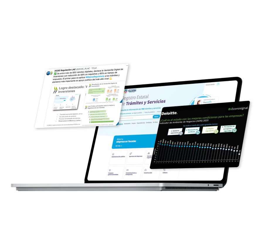 Yucatán buscaba consolidarse como líder nacional en inversión con el respaldo de la OCDE. El reto fue implementar la VDI, que escaló de 57 a 588 trámites digitales, redujo requisitos en -56% y tiempos en -85%, logrando reconocimiento internacional como referente en competitividad.