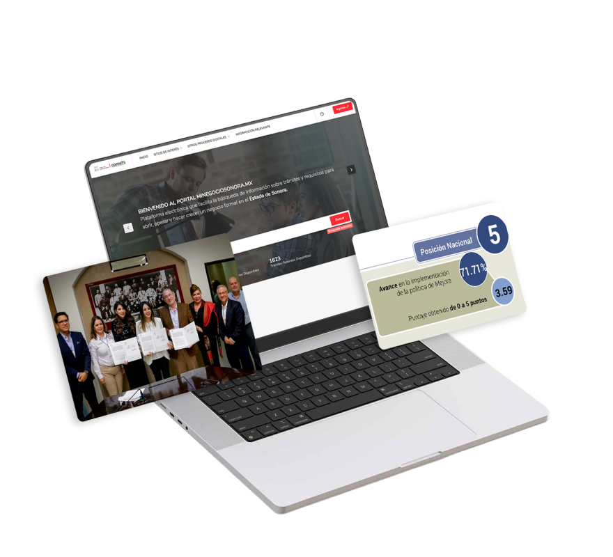 Sonora debía mejorar su competitividad empresarial ante trámites dispersos y costosos. El reto fue integrar en Mi Negocio Sonora más de 1,980 trámites (215 municipales, 142 estatales, 1,623 federales), logrando un salto del 17º al 5º lugar nacional en mejora regulatoria en 2020.