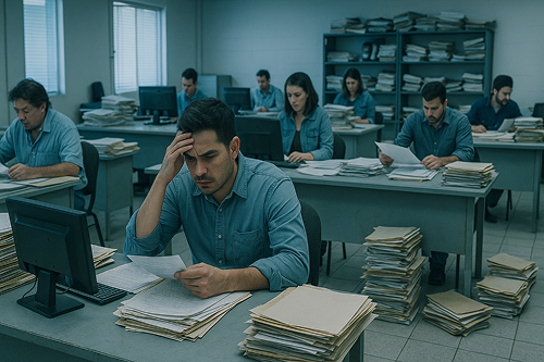 El resultado: Los funcionarios terminan revisando papeles una y otra vez, multiplicando cuellos de botella