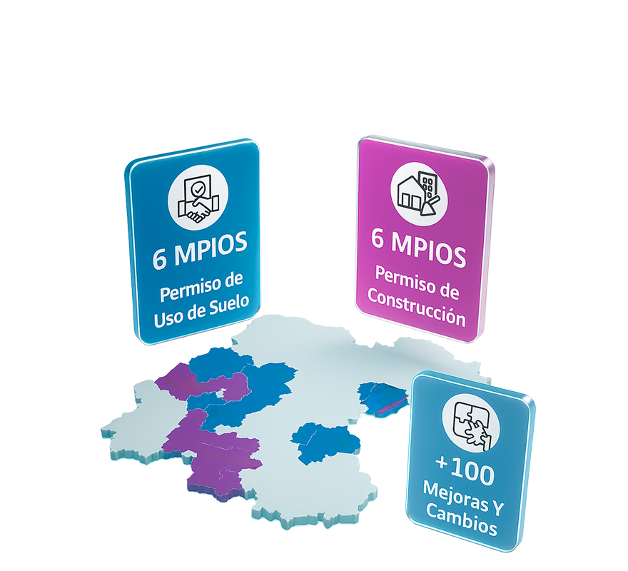 Los municipios operaban con criterios dispersos en construcción y uso de suelo, generando incertidumbre. El reto fue homologar ambos procesos en 6 municipios, con más de +100 mejoras normativas y operativas, logrando reducciones de hasta 40 % en tiempos de respuesta.