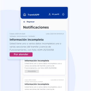 Abrir un negocio no debería significar llenar cinco formularios y hacer cuatro visitas distintas. Con Trami.GOV, los trámites relacionados se integran en un solo flujo: entregas tu información una vez y recibes todas las resoluciones al mismo tiempo .