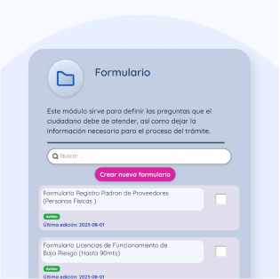 Unifica trámites, integra áreas, automatiza procesos y ajusta reglas en segundos. Con trazabilidad total y operación 100% digital, reduce costos, elimina retrasos y mejora la experiencia ciudadana.